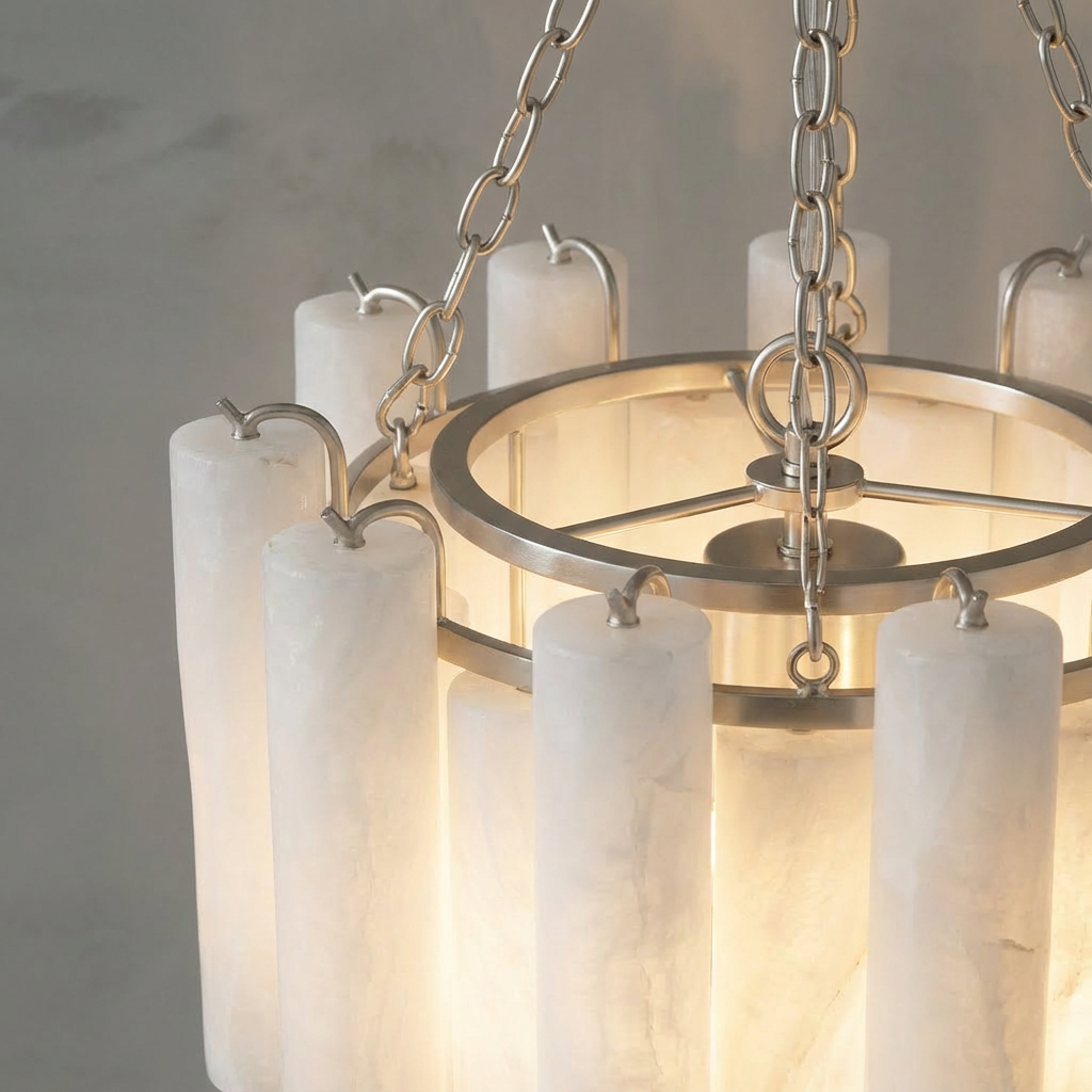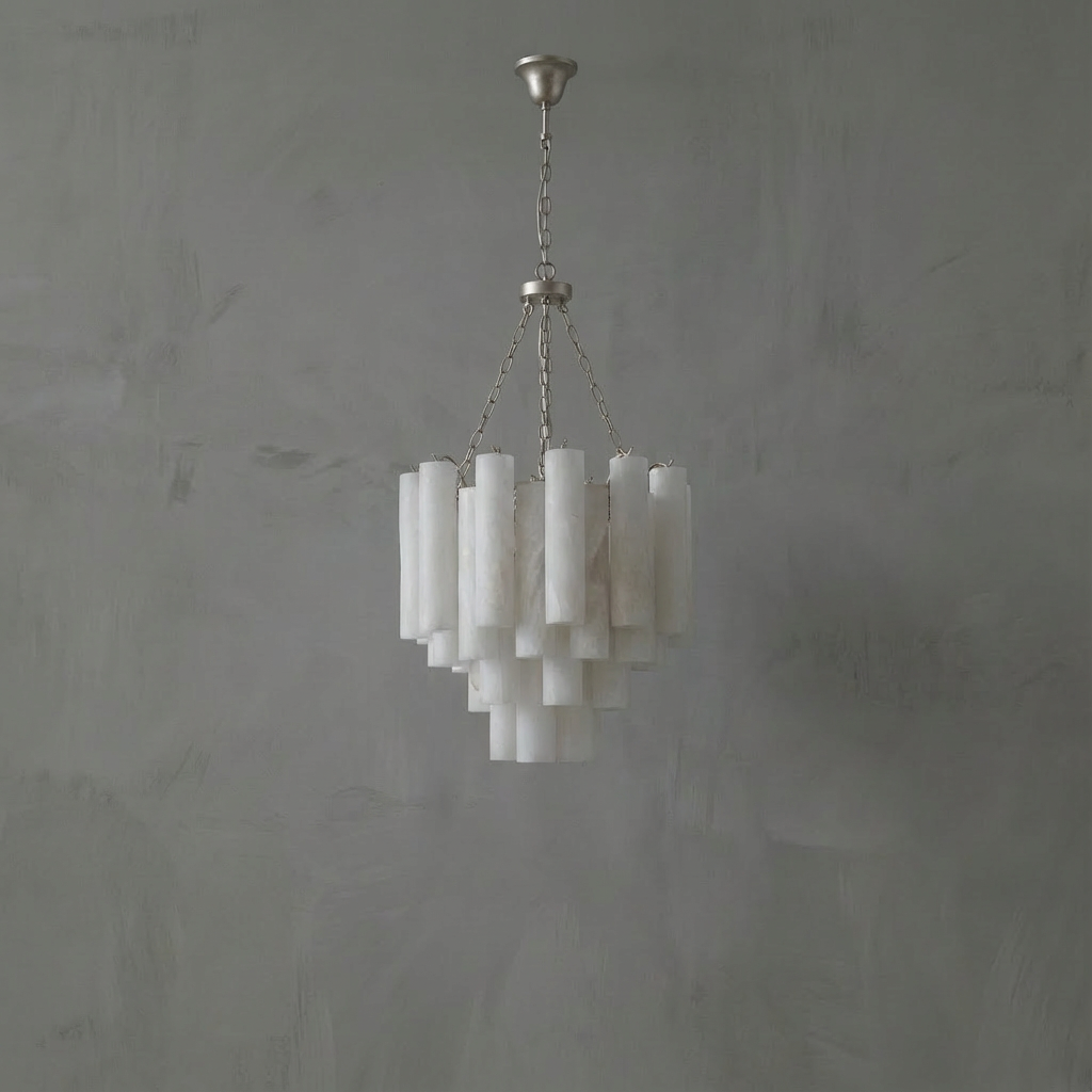 Introducing our Murano Chandelier 36 Tubes Alabaster White Series - a sculptural yet understated centerpiece that brings a quiet sense of luxury to any space. Crafted in alabaster, it uses the stone's natural translucency to create a soft, diffused halo of light that feels deeply human in scale and presence. When illuminated, subtle mineral markings emerge within the alabaster tubes, revealing delicate variations that make the chandelier feel alive and ever-changing. The experience shifts gently from day to night, offering a refined glow after dark and a serene, architectural presence by day. Use this chandelier wherever you want lighting to feel like an integrated part of the architecture rather than an added object. Its clean lines, alabaster materiality, and timeless Murano-inspired design make it a sophisticated choice for modern, elevated interiors.