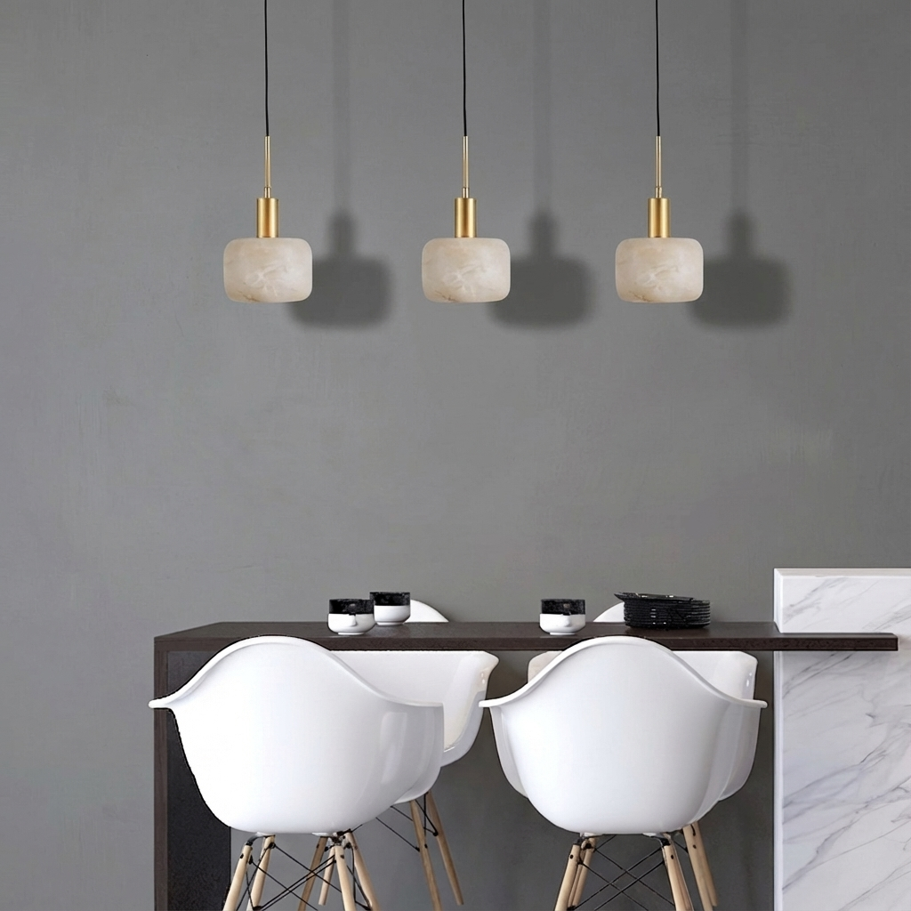Introducing our Natural Alabaster Small Pendant Light Series. Each shade is carved from natural alabaster, inviting light in rather than simply allowing it to pass through. When illuminated, the stone diffuser glows with layered depth-revealing soft marbling, faint web-like veining, and translucent fields that respond beautifully to the dimmer. Designed for intimate, refined spaces, this small pendant brings a grounded, atmospheric glow to hallways, seating nooks, or stair landings. Instead of a harsh point of light, it offers a warm presence that quietly elevates the room, blending modern elegance with the organic beauty of natural stone.