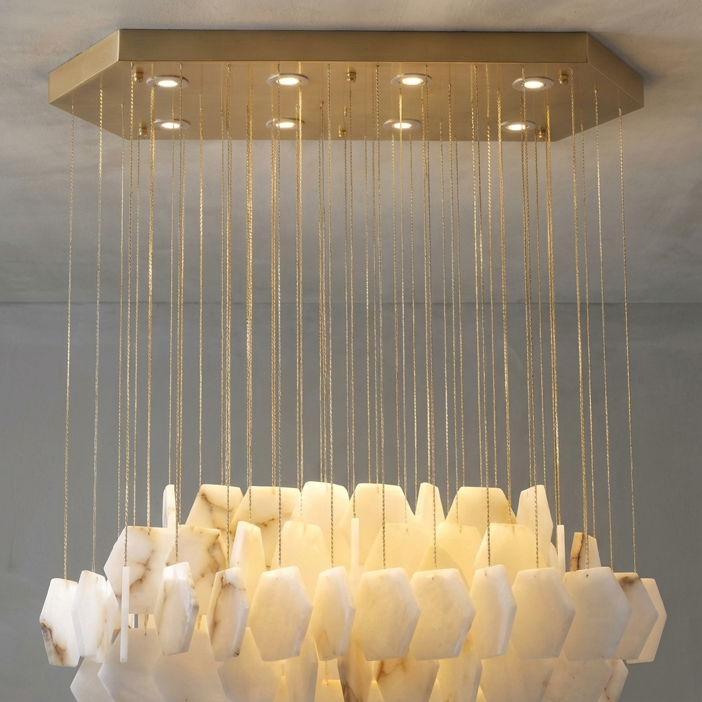 In living rooms, bedrooms, or quiet transitional areas, this alabaster chandelier reads as a calm, luminous object that gently reshapes the mood of the space. It adds a serene, modern glow that complements both contemporary and timeless interiors.