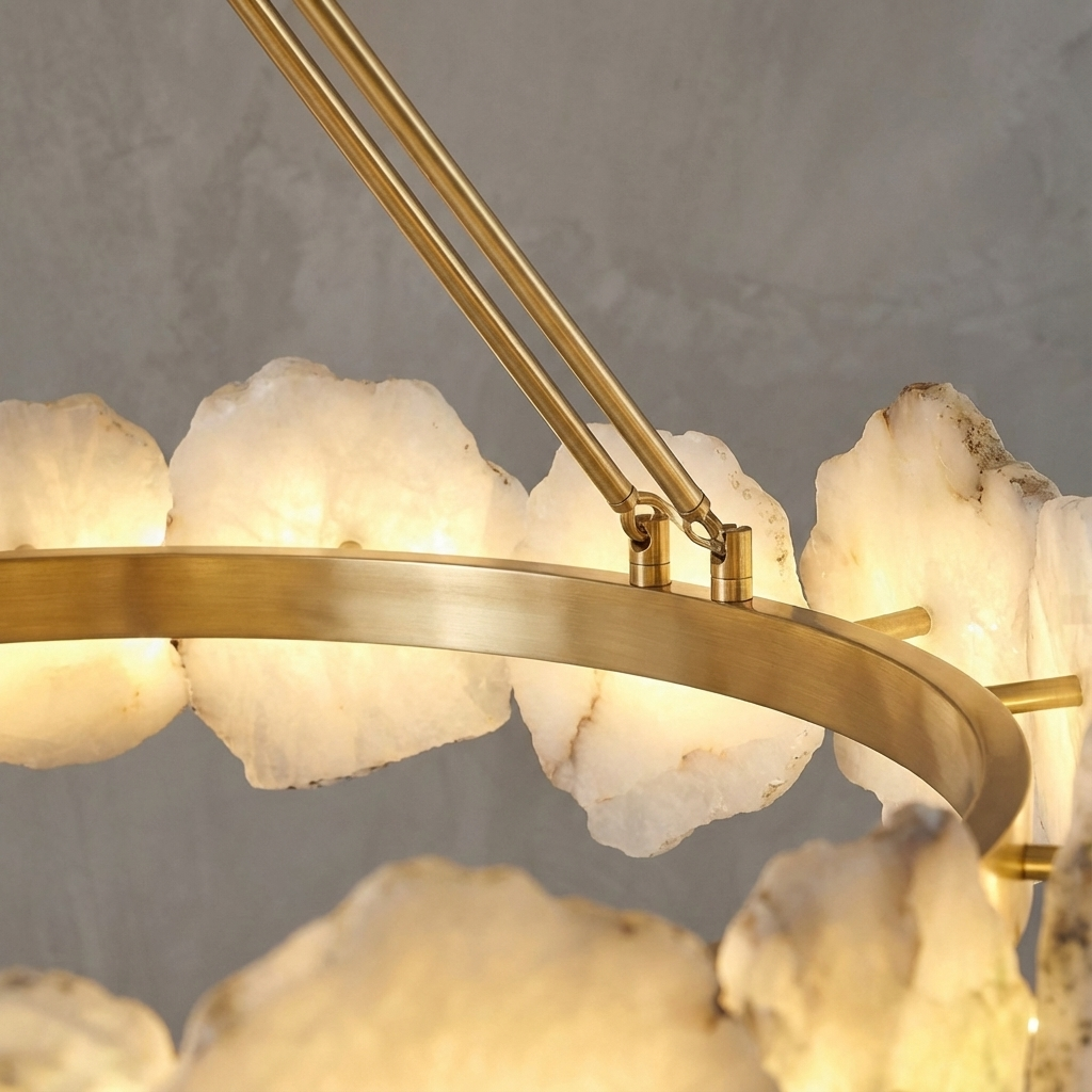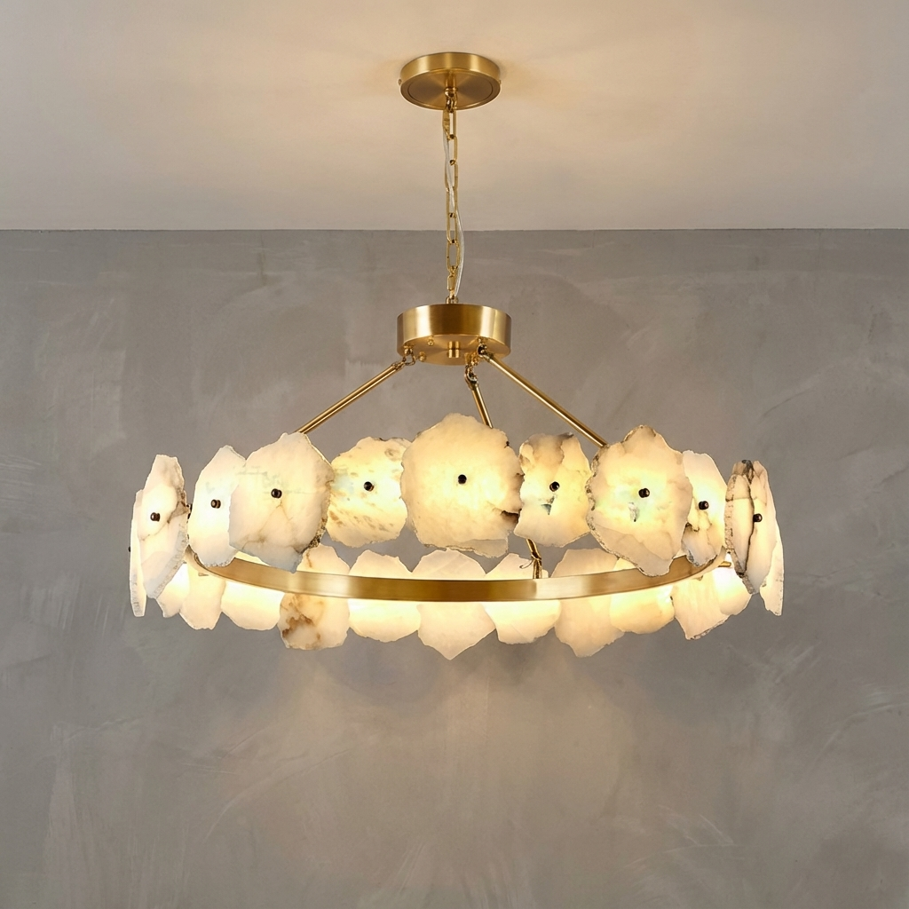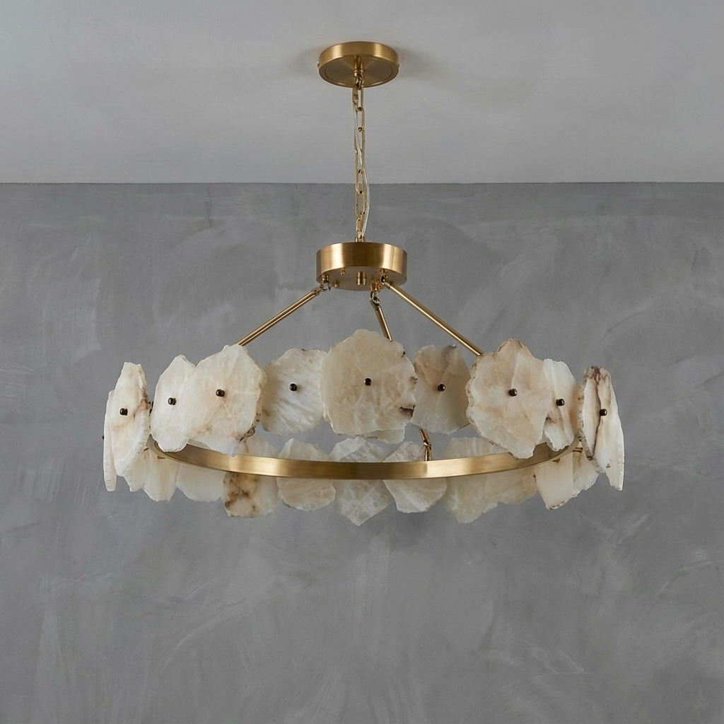 Introducing our Natural Alabaster Modern Round Chandelier Series, where sculptural form and luminous stone meet in a quietly striking design. Each piece centers its illumination within the alabaster, then lets the light gently fade toward the edges, creating a soft gradient that flatters surrounding surfaces. When lit, the natural alabaster reveals feathered veining and pale tonal shifts, giving the chandelier a subtle sense of movement and depth. The result is a warm, enveloping glow that feels both refined and inviting. This modern round chandelier is especially at home in interiors built around natural textures such as wood, linen, and plaster, where lighting is meant to feel tactile and serene. Its understated elegance makes it an ideal focal point for spaces that value warmth, softness, and timeless, natural materials.
