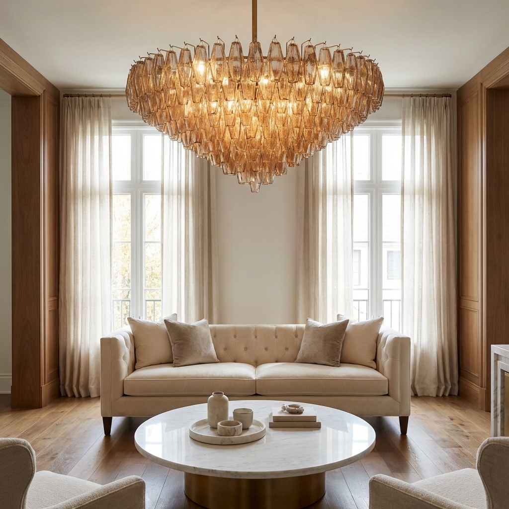 - Style: Murano-inspired, minimalist modern, luxury statement lighting