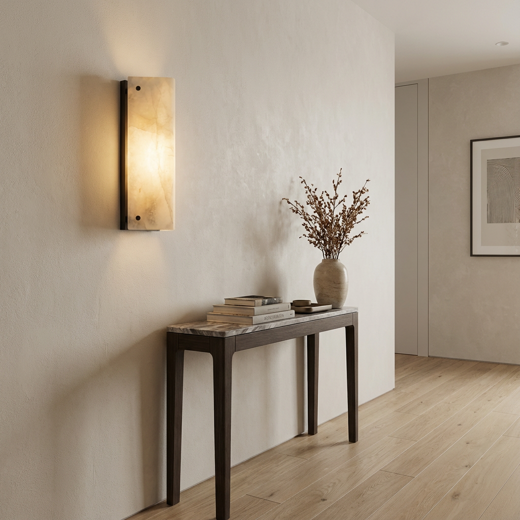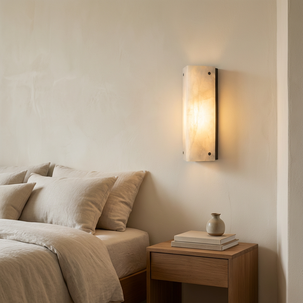Introducing the Reynard Alabaster Sconce Series, where gentle radiance meets sculptural elegance. Light flows through the alabaster, awakening subtle mineral formations that appear to drift just beneath the surface, creating a quietly captivating glow. The refined, sculptural form feels naturally carved, as if shaped over time, and diffuses light into warm, atmospheric layers. Its serene presence makes it an ideal choice for tranquil bedrooms, meditative passages, or living spaces guided by organic textures and soft illumination. Thoughtfully designed for modern interiors, this alabaster sconce brings a sense of calm sophistication to any setting, enhancing the mood with its understated, luminous beauty.