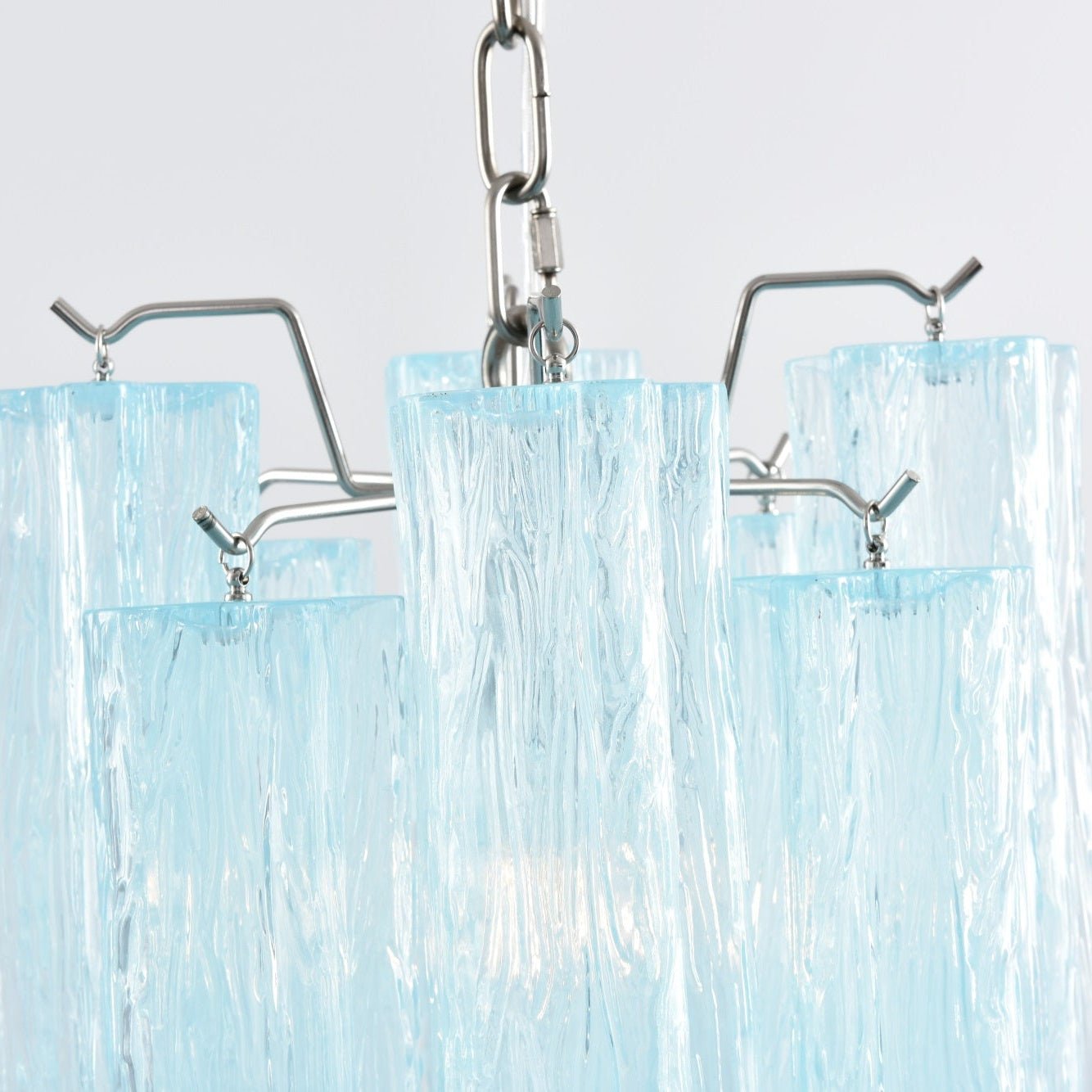 Its multi-tier silhouette creates a refined sense of movement, while the hand-finished glass and metal frame add craftsmanship and visual depth. Though compact in scale, the chandelier offers a striking decorative presence and can be customized to suit your project requirements.