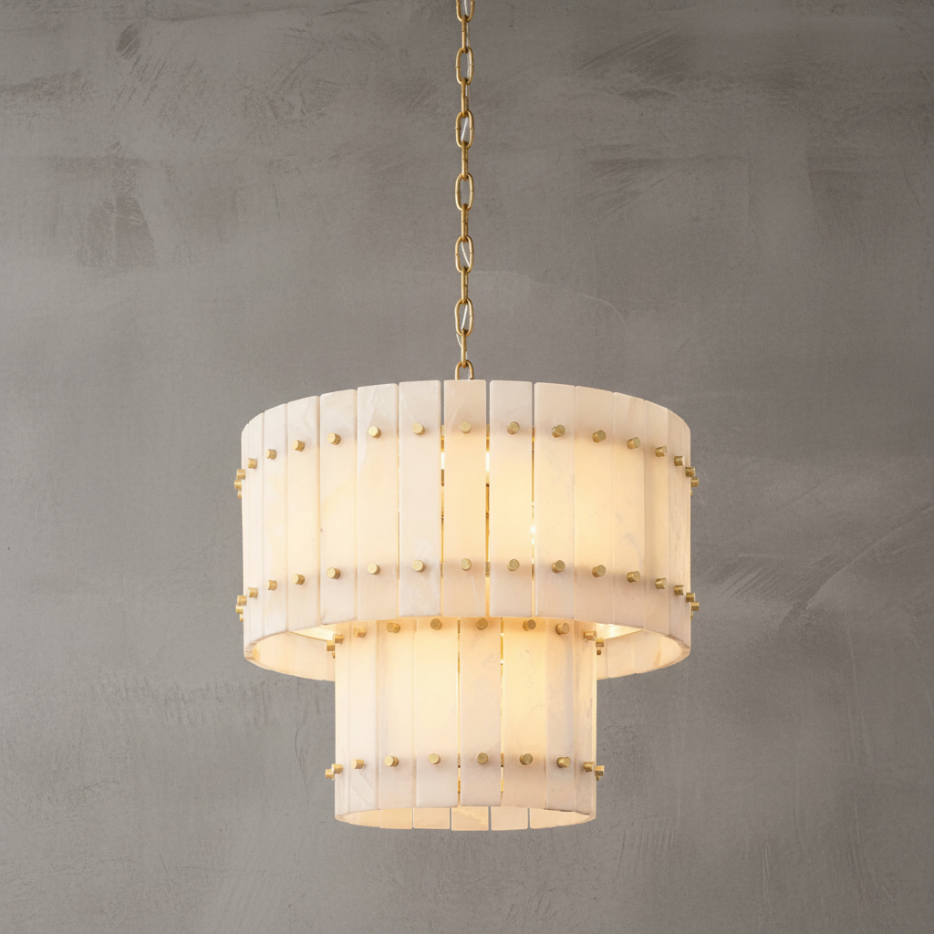 San Marco Alabaster Round Tiered Chandelier 60"