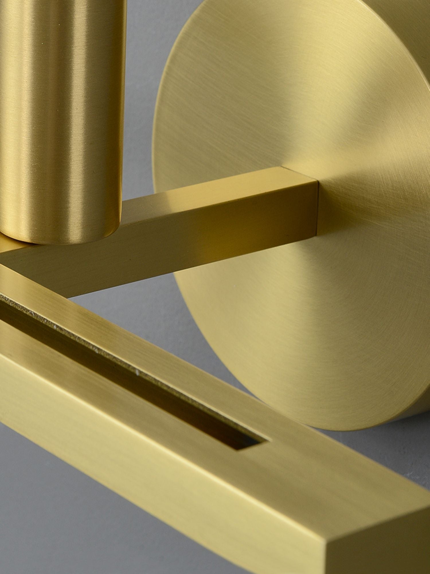 Like all great minimalist designs, this piece makes a statement with a shortlist of shapes and lines. Its brass crossbar appears like a horizon line, holding up a beautiful white Alabaster disc dripping with natural texture. Light from behind accentuates the Alabaster’s wondrous swirly notes while setting up a crisp silhouette in its surrounding ambient glow.