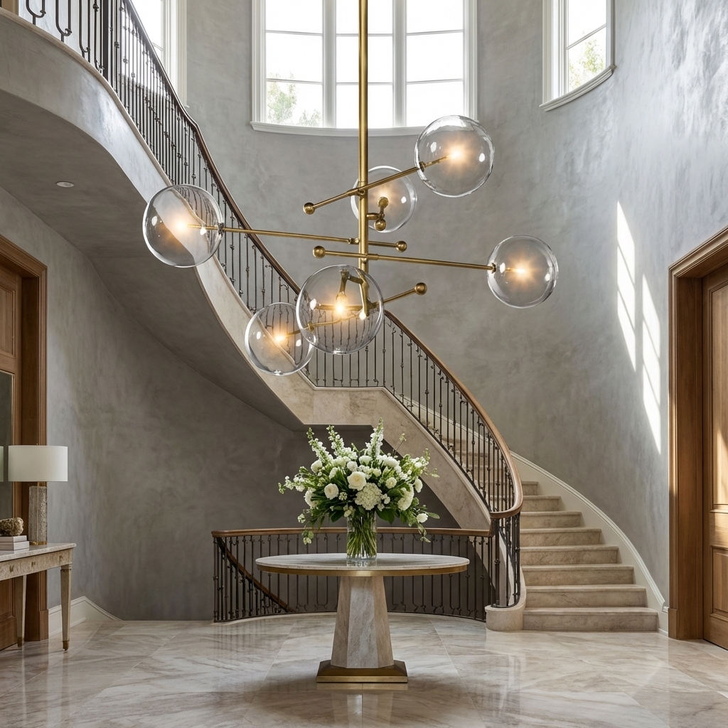 The adjustable rod configuration allows the chandelier to install at a height that suits both standard and taller ceilings. With its luminous clear glass spheres and precise linear framework, the Sfera Six-Arm Chandelier 55"W delivers sculptural presence while maintaining a light, open feel.