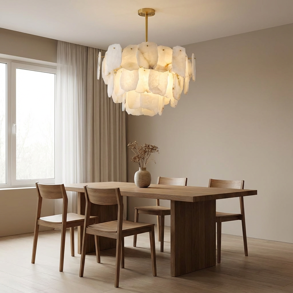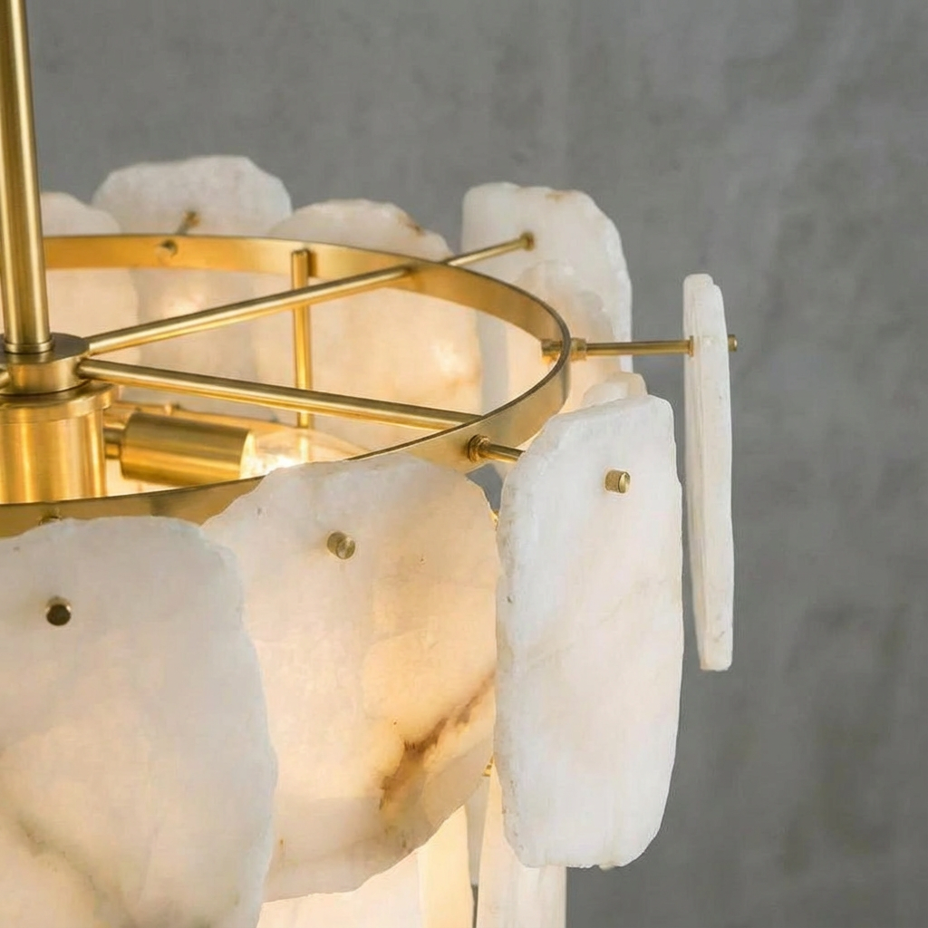 Introducing the Spain Alabaster Modern Living Room Chandeliers Series - a collection that brings quiet sophistication and natural beauty into your home. Soft radiance filters through genuine alabaster stone in layered gradients, revealing delicate mineral veining that makes each piece uniquely its own. The chandeliers feel sculpted rather than manufactured, with a form that allows the warm glow to settle into the room with a grounded, welcoming presence. Alabaster's natural texture and subtle translucence create an inviting ambience that enhances both day and evening settings. Designed to complement interiors shaped by natural materials, gentle curves, and muted palettes, this series adds a calm atmospheric layer to living rooms, bedrooms, and softly lit architectural transitions. The result is a modern, elegant focal point that feels timeless, refined, and effortlessly at home in contemporary spaces.