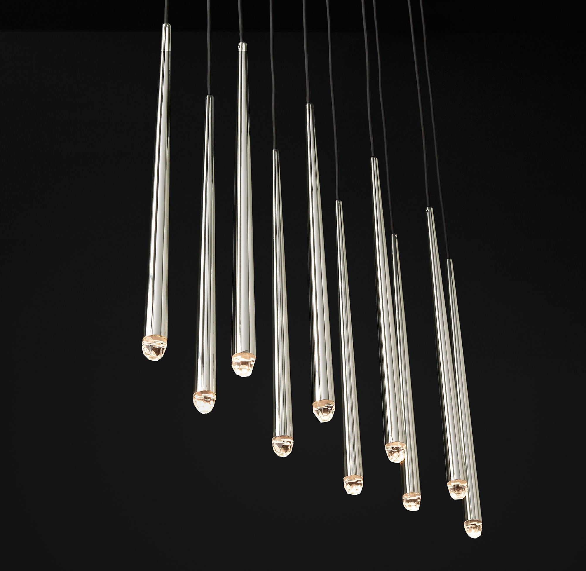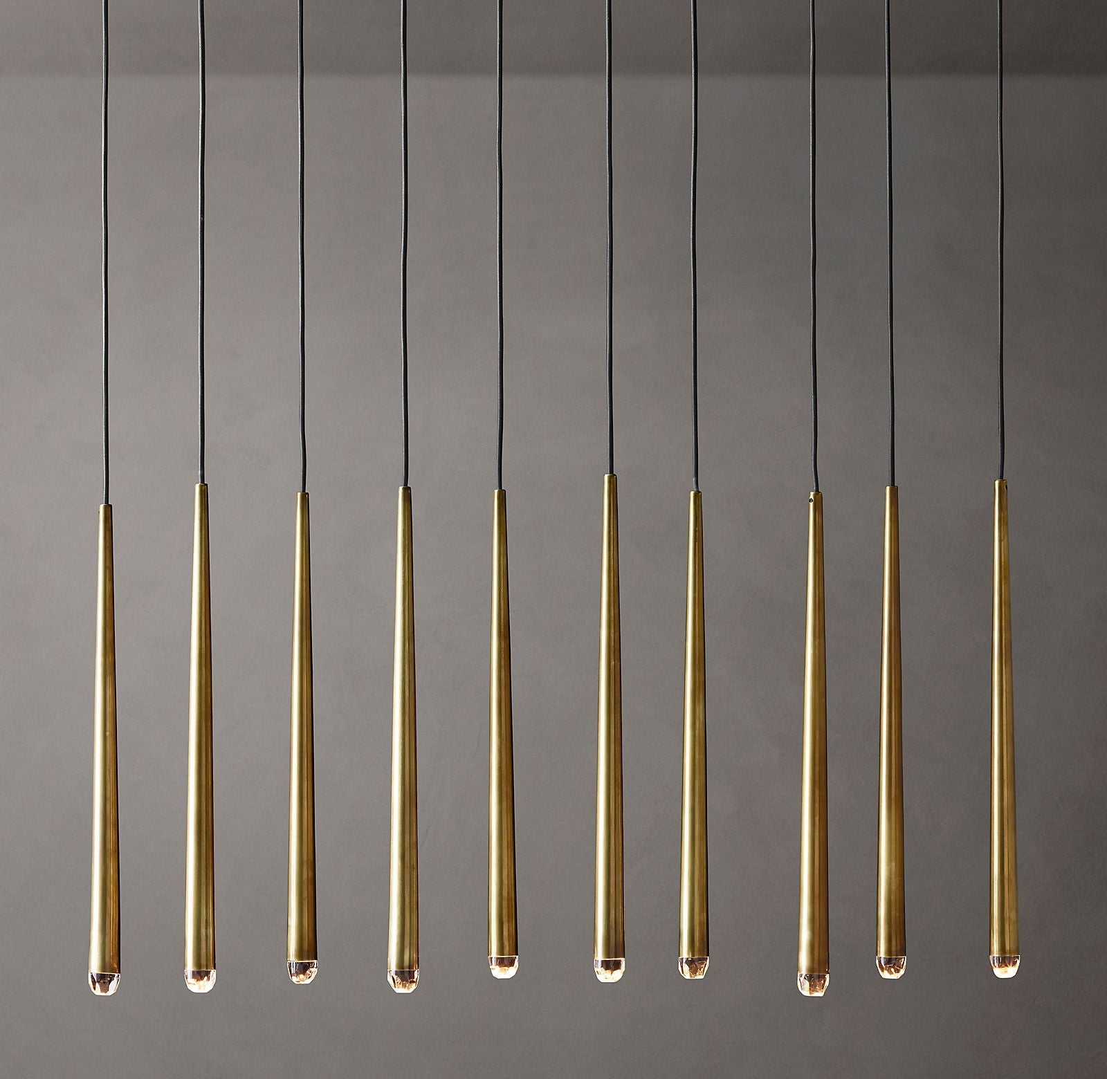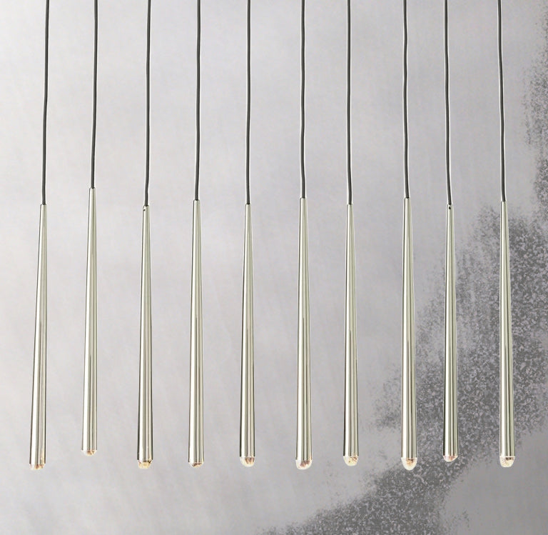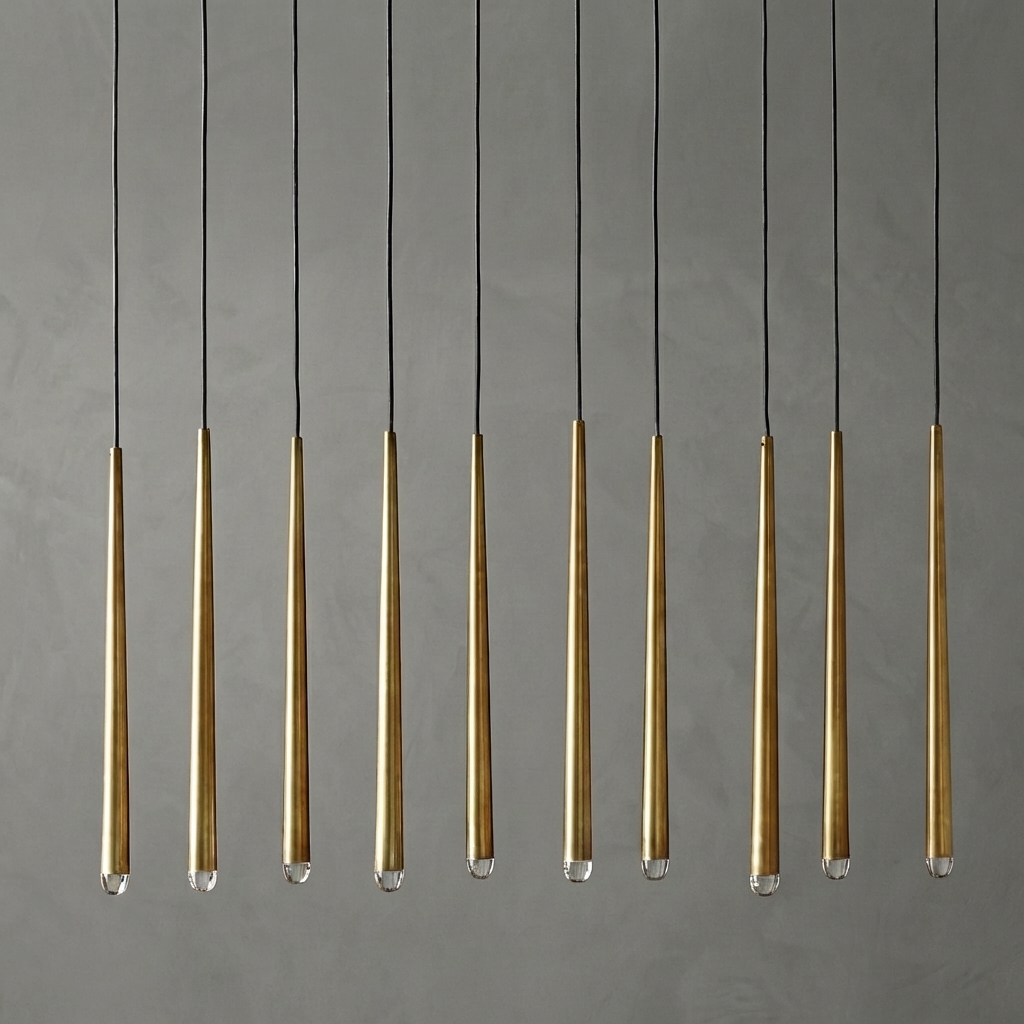 The Stellara Linear Chandelier 48" brings a refined architectural presence to interiors with its slim tapered brass rods, faceted crystal points, and clean vertical composition. Designed to balance minimalism with luxury, this linear chandelier creates a striking silhouette above dining tables, kitchen islands, and long living spaces.