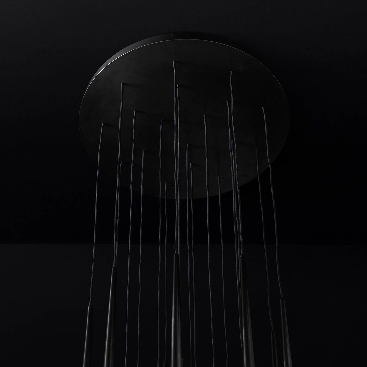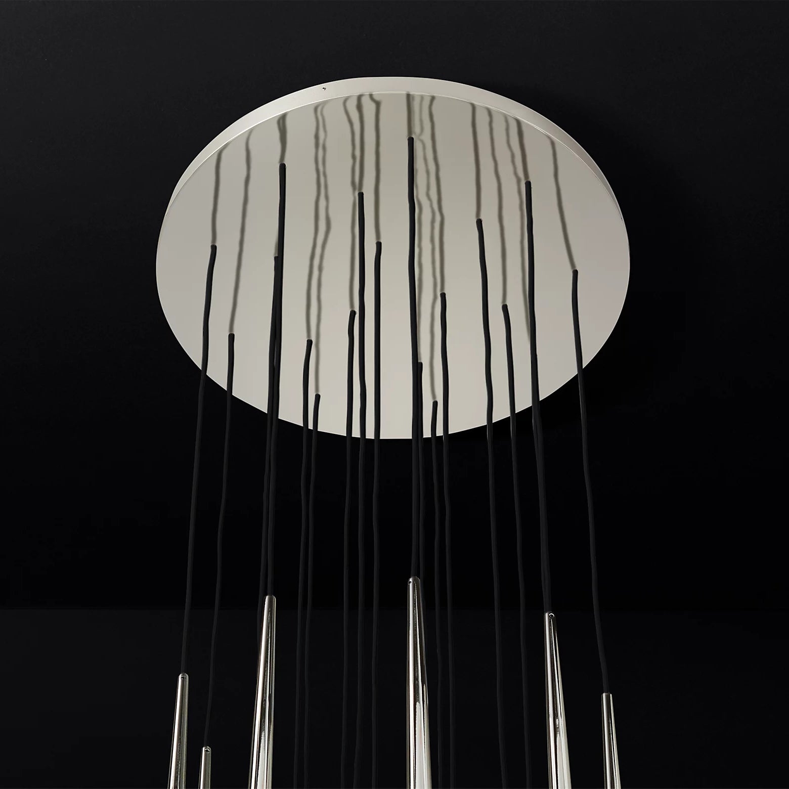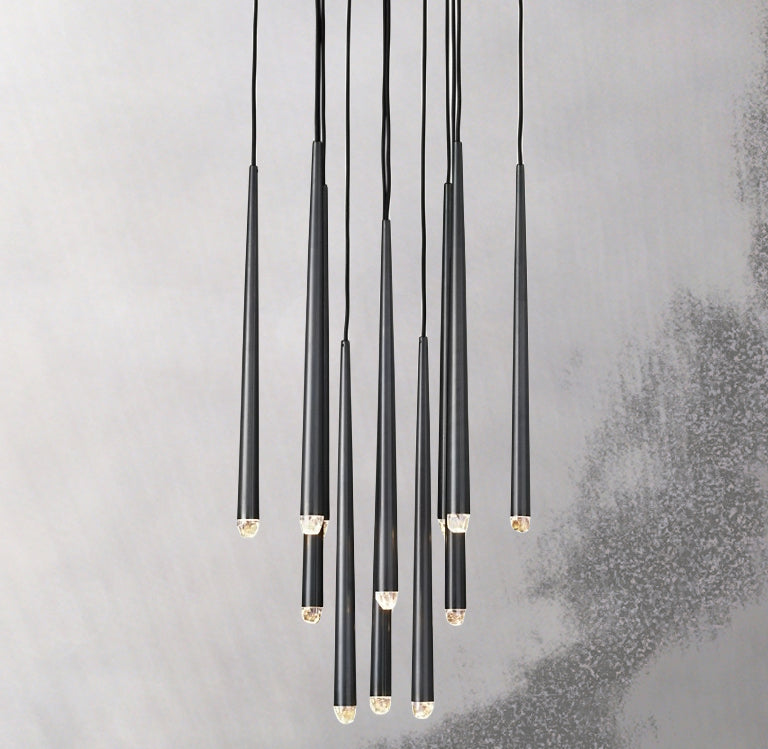 The Stellara Round Chandelier 30" brings a refined architectural presence to any interior with its slim tapered brass rods and faceted crystal points arranged in clean vertical lines. Its elongated silhouette balances minimalism and luxury, making it an ideal statement fixture for living rooms, dining rooms, bedrooms, villas, and hospitality spaces.