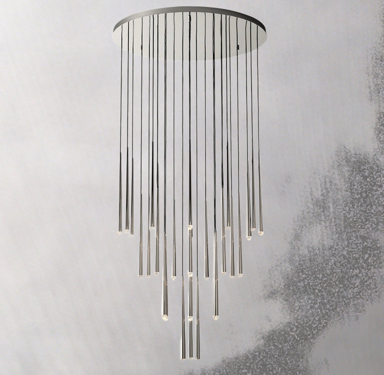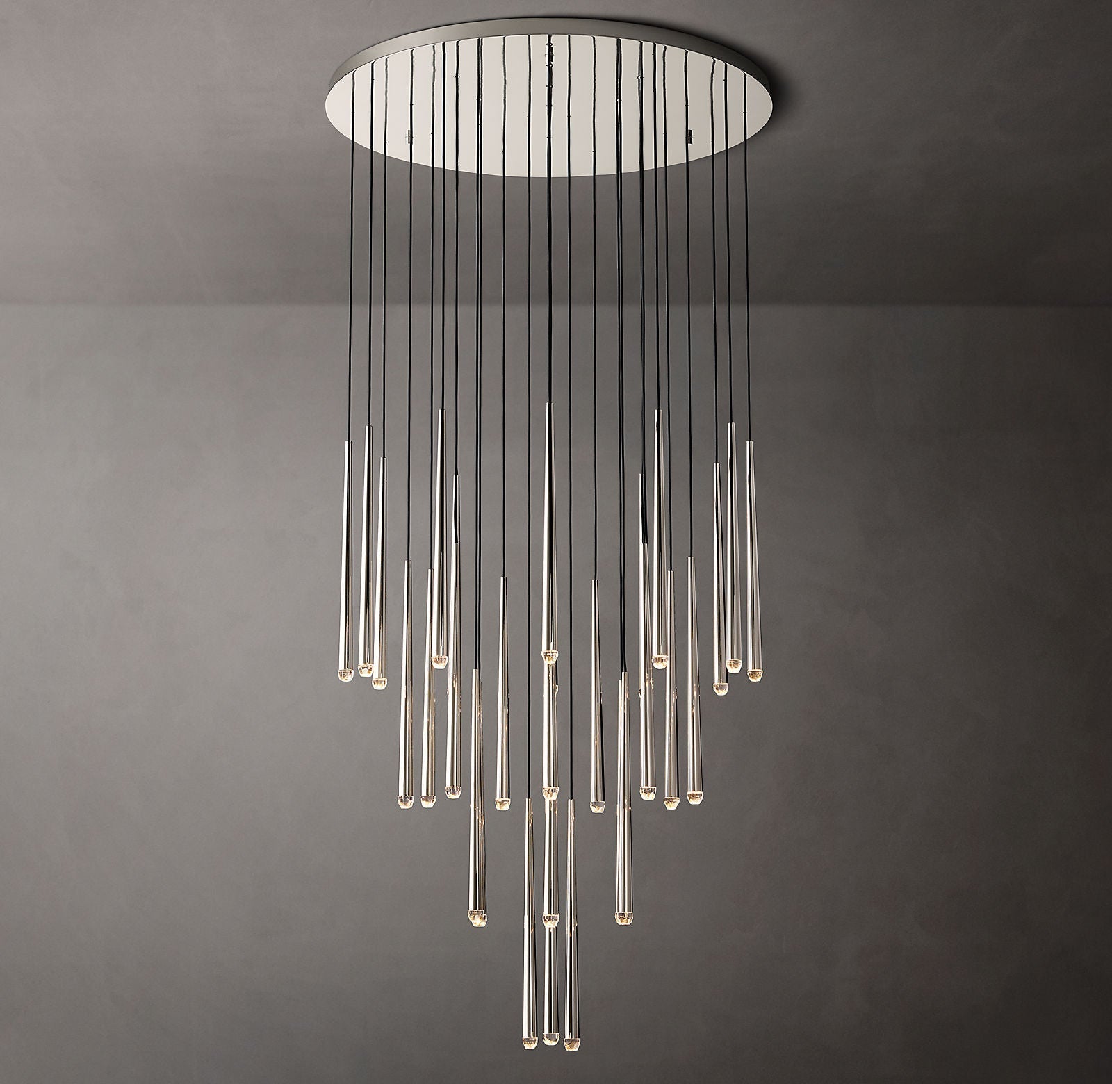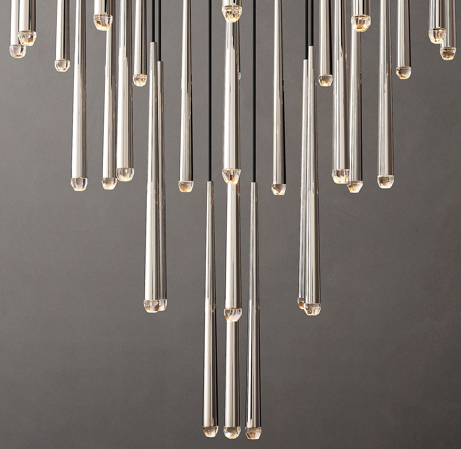 With its clean vertical composition and softly glowing crystal-tipped forms, the Stellara Round Chandelier 48" offers a luxurious yet restrained look suited to both contemporary and transitional interiors.