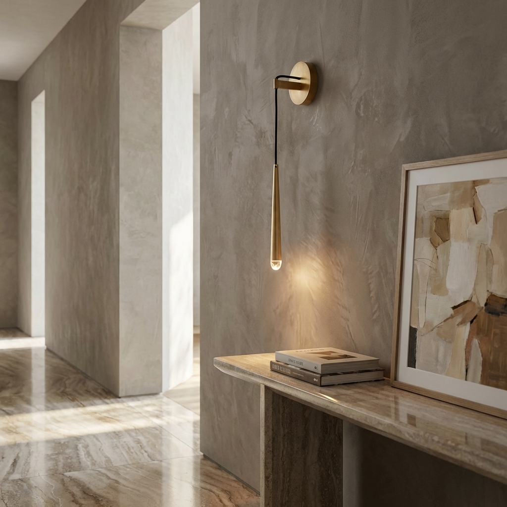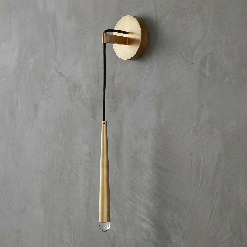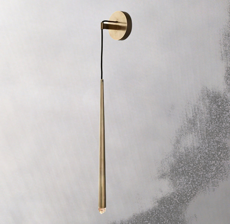 The Stellara Sconce 22"H brings a refined architectural presence to the wall with its slim, tapered brass rod and crystal-point detailing. Designed in the Stellara series, this elongated silhouette feels clean, modern, and sculptural, making it a striking accent for hallways, foyers, bedrooms, dining areas, and living spaces.