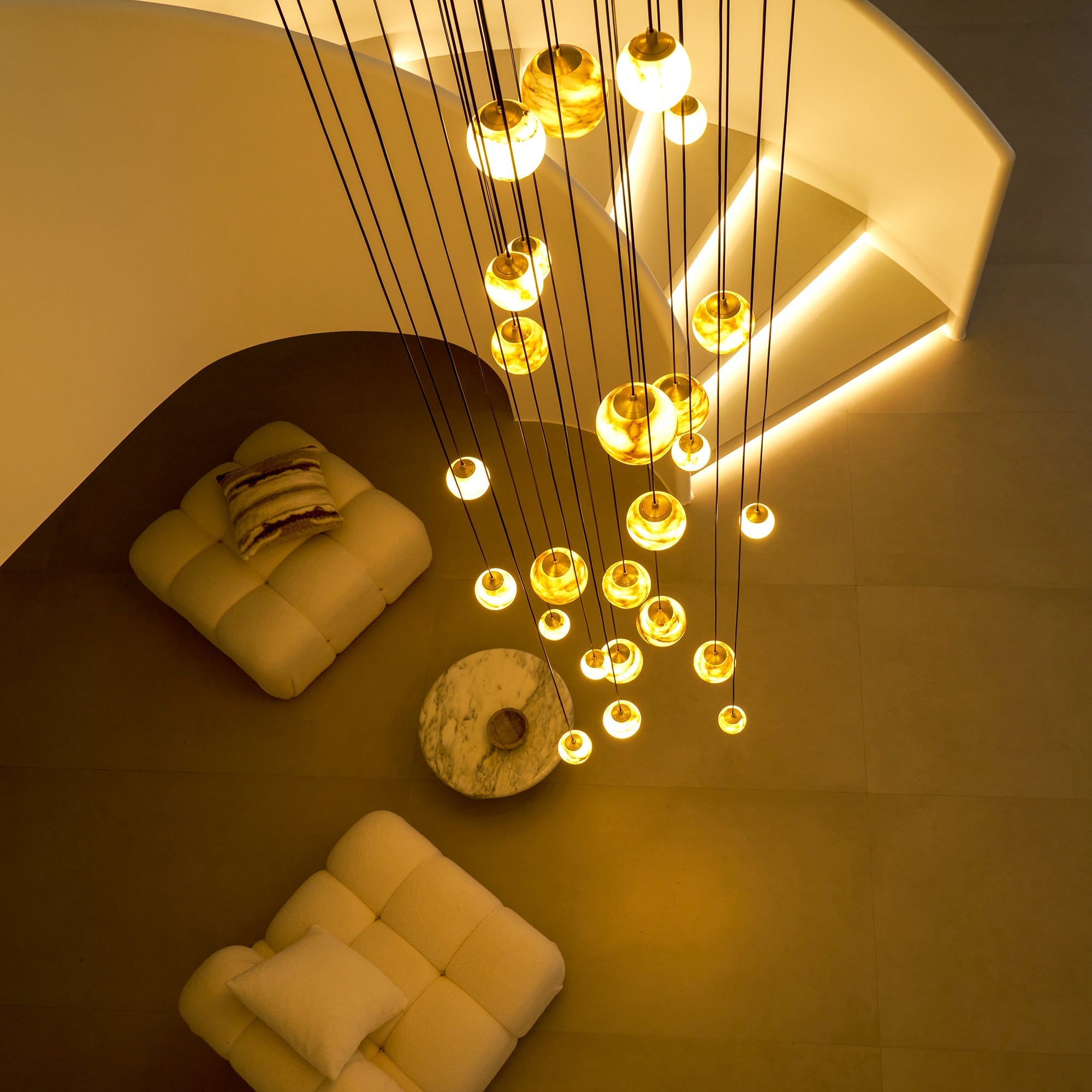 Illuminate your space with the captivating elegance of the Sultana chandelier. Its handcrafted yellow alabaster is meticulously carved and harmoniously blends with the dazzling metal finish to create a luxurious ambience. Whether it adorns a dining room, foyer or upscale venue, this lamp exudes sophisticated elegance and is a timeless classic wherever it shines.