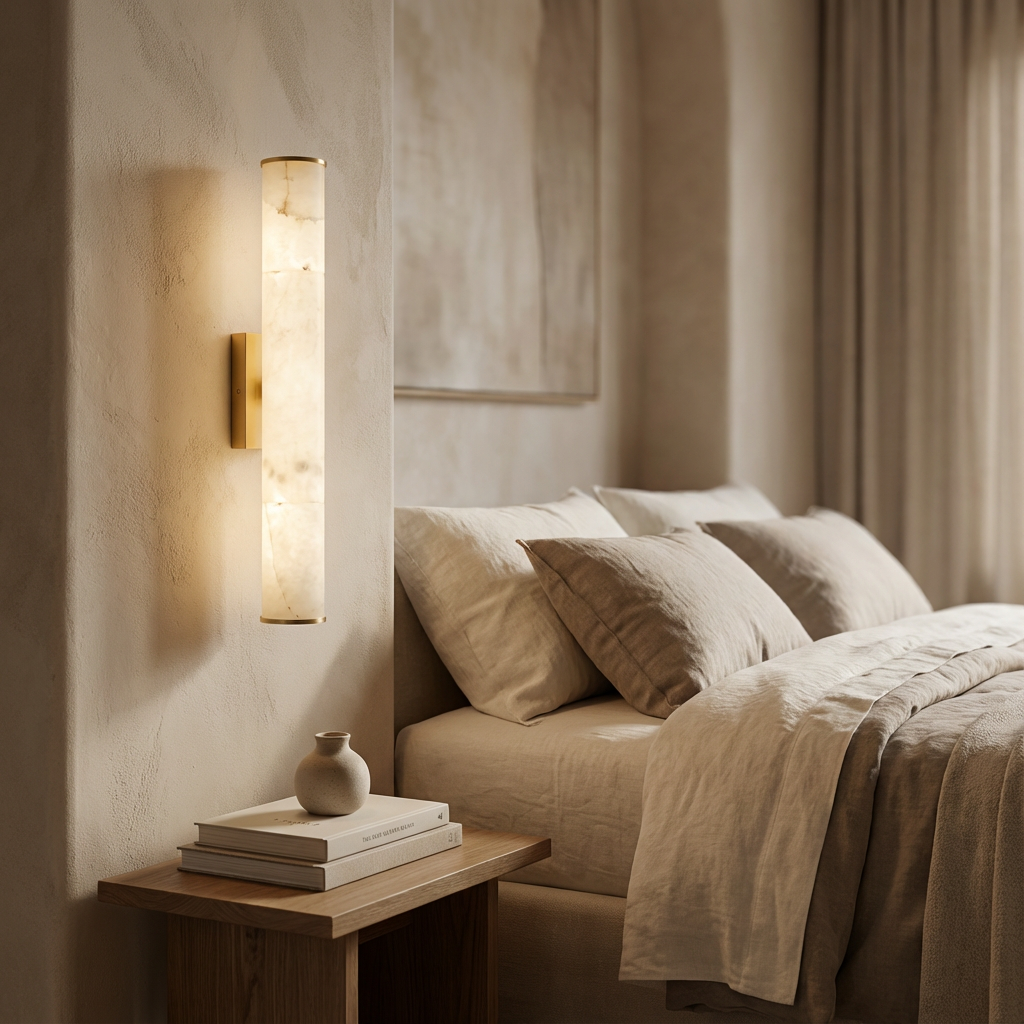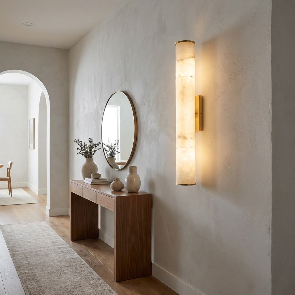 Introducing the Sylvia Wall Sconce in alabaster - a serene halo of light that reveals the stone's natural mineral patterns in soft, subtle layers. When illuminated, the alabaster comes alive with a warm, diffused glow that feels both refined and deeply calming. Designed for interiors that value atmosphere and sculptural simplicity, this sconce brings an inviting sense of depth to any space. It is particularly well-suited to dining areas, quiet lounge environments, and architectural pathways where lighting is integral to creating a gentle, natural rhythm throughout the room. Thoughtfully composed and effortlessly elegant, the Sylvia Wall Sconce functions as both illumination and art, enriching your surroundings with a quiet, contemporary presence.