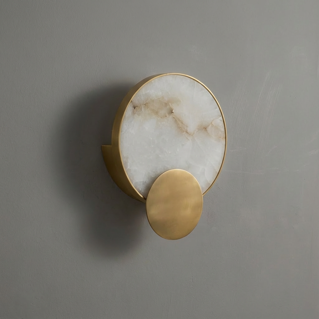 Introducing the Alabaster Terra Svet Wall Lamp - a refined study in natural stone and soft illumination. Crafted in alabaster, this wall lamp is designed to showcase the material's depth and character, revealing a layered translucency when lit. As it glows, fine veining and clouded formations emerge gradually, creating a sculptural, atmospheric light. Its quiet presence makes it an elegant choice for hallways, niche lighting, or intimate seating areas, where a gentle, inviting ambiance is desired. The Terra Svet Wall Lamp blends seamlessly into contemporary, transitional, and organic-modern interiors, offering understated sophistication where subtle detail speaks louder than ornamentation.