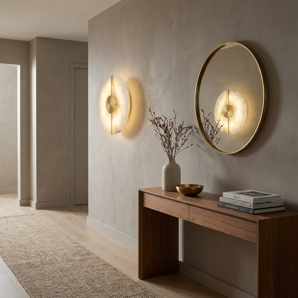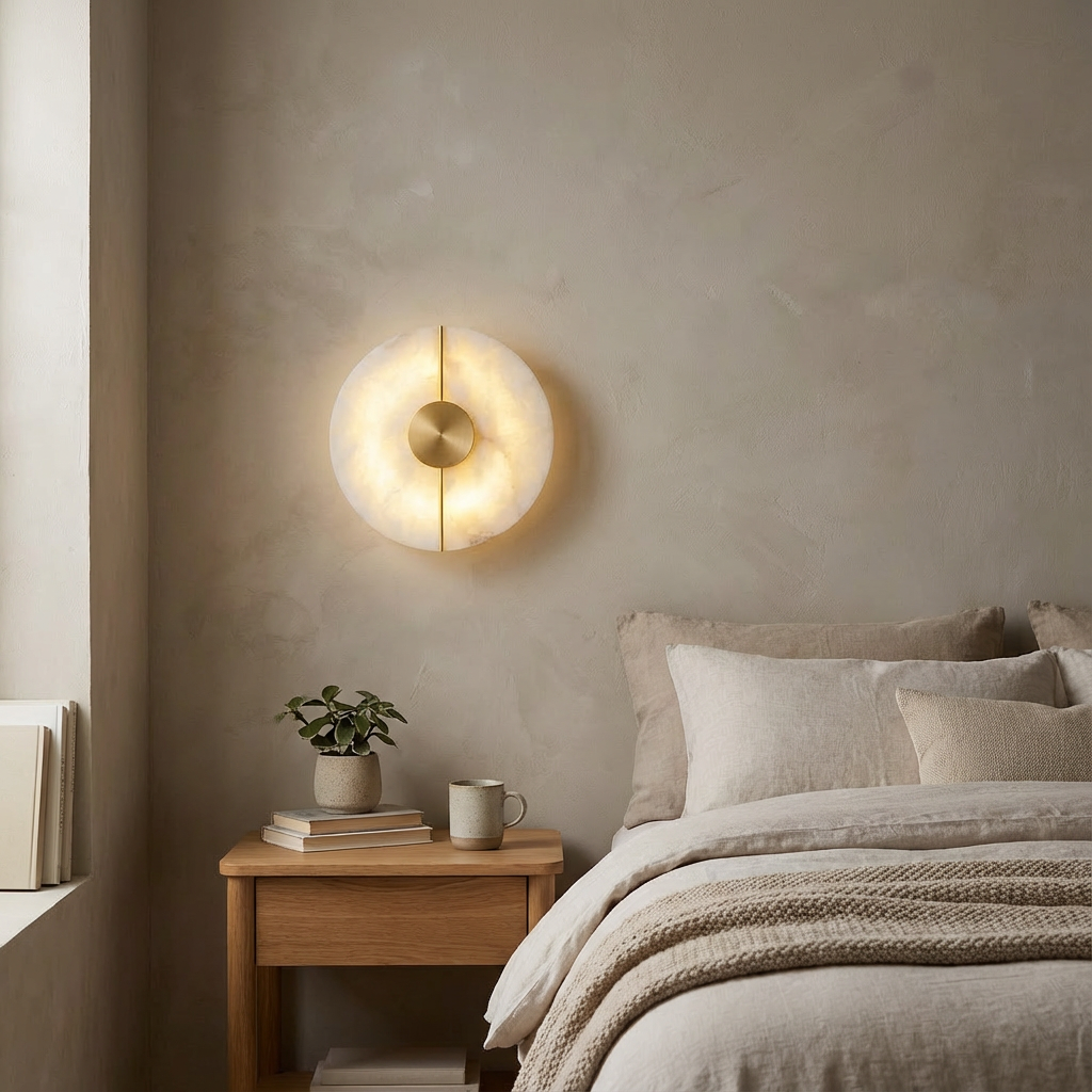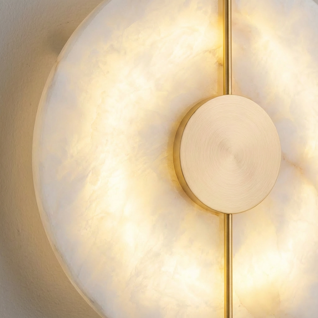 Introducing the Yohana Alabaster Wall Sconce Series - designed to draw out alabaster's natural complexity and quiet beauty. As it illuminates, the stone reveals delicate mineral lines beneath the surface, creating a soft, sculptural glow with remarkable depth. The light seems to rise from within the alabaster, offering a warm, calming presence that gently animates walls without overwhelming the space. Visually engaging yet understated, this wall sconce elevates alcoves, stair passages, and architectural niches with modern, refined ease.