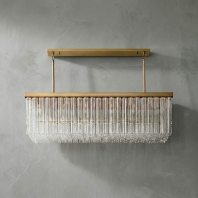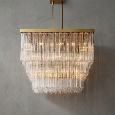Poliedra Clear Glass Tiered Rectangular Chandelier 54''